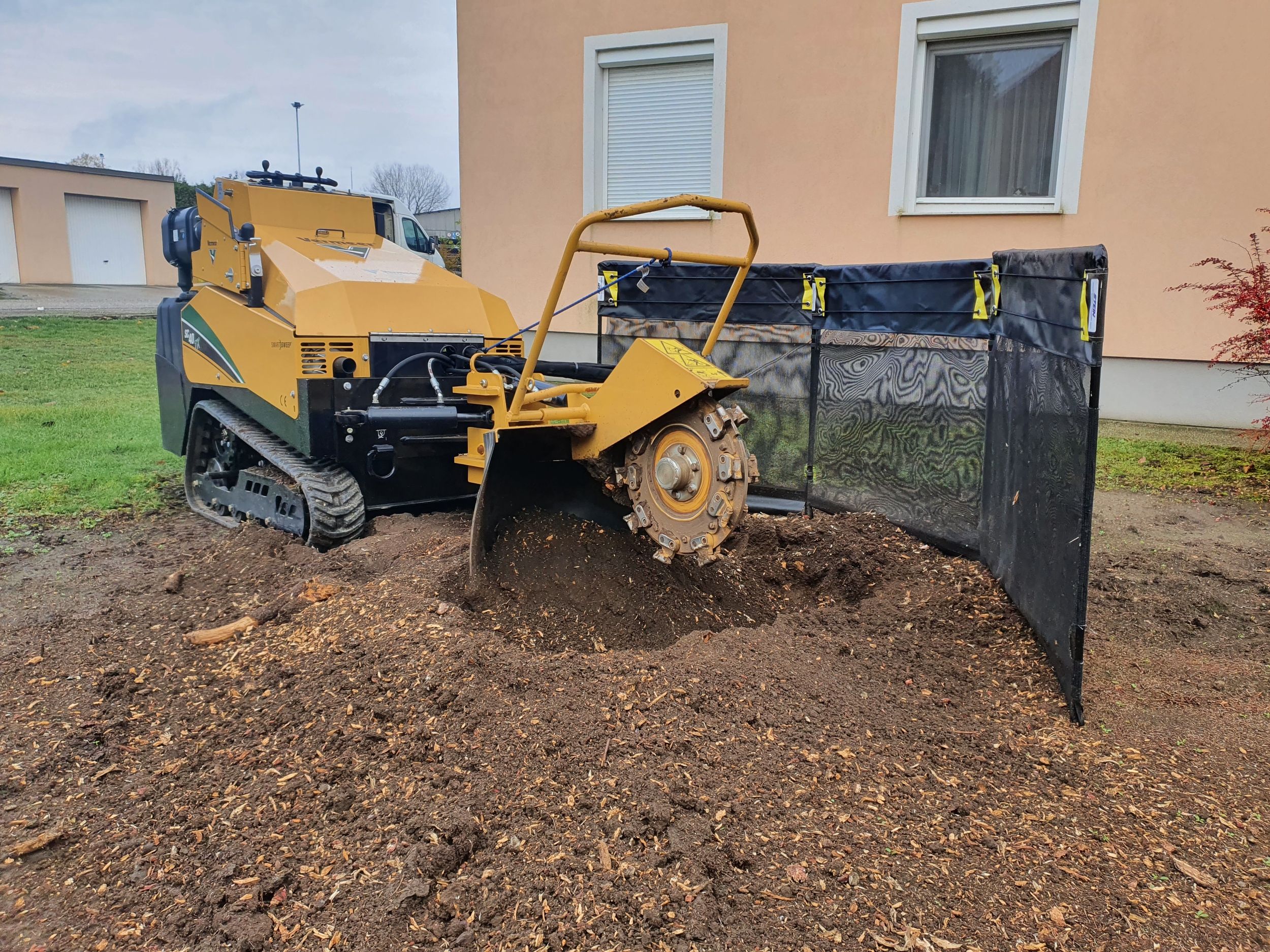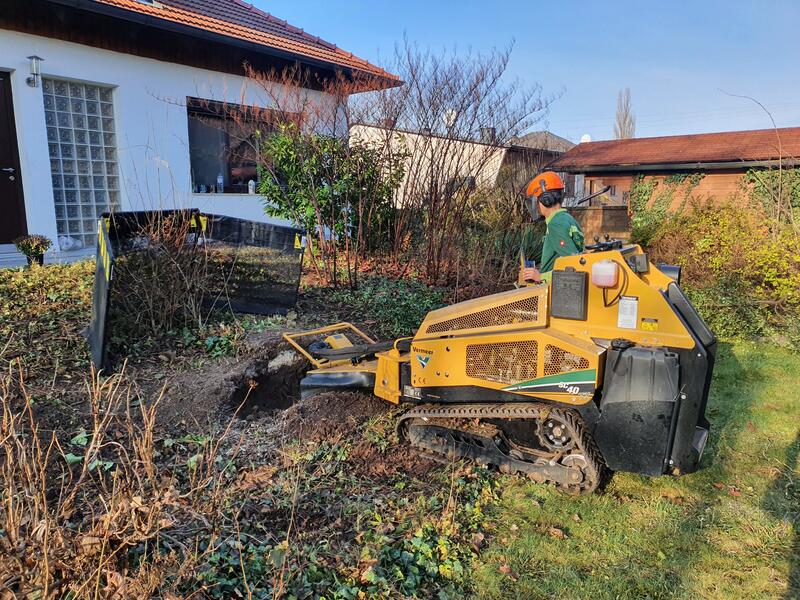 Wir fahren schwere Geschütze auf: Baumstumpf mit der Wurzelfräse entfernen